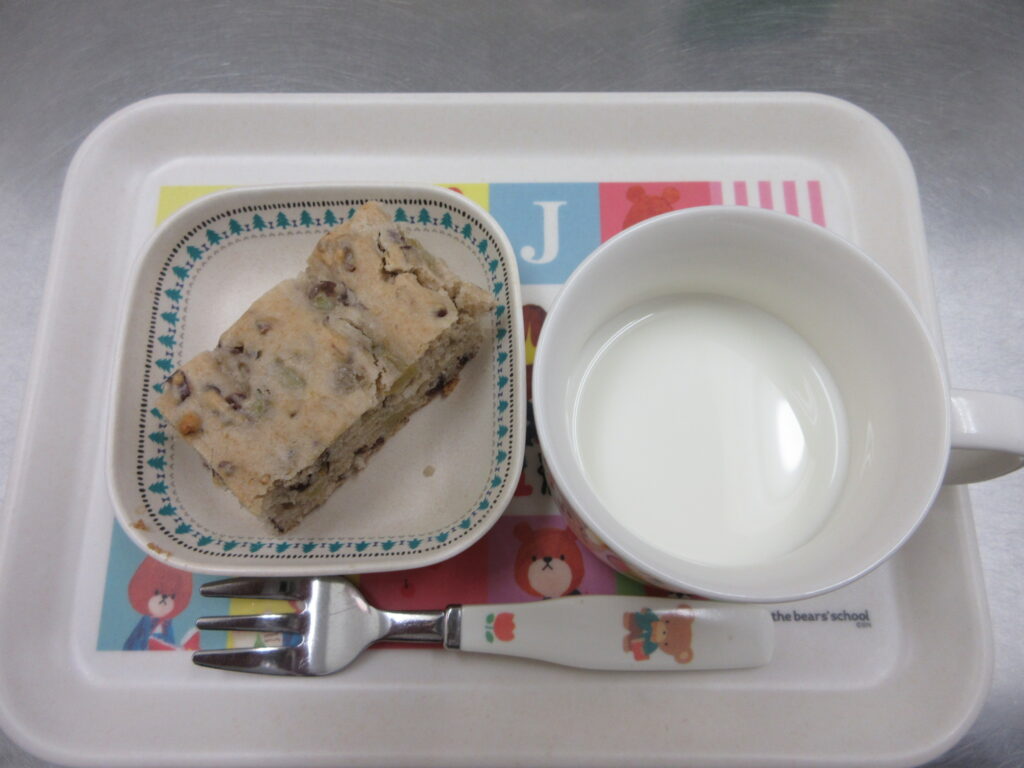 1月7日(火)・小豆ケーキ・・・小豆あんで甘味をつけ、さつま芋も入った和風ケーキです。